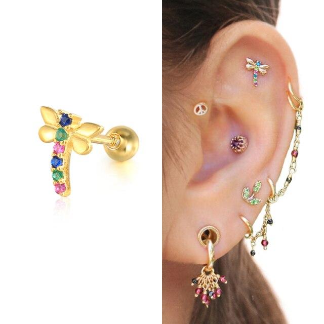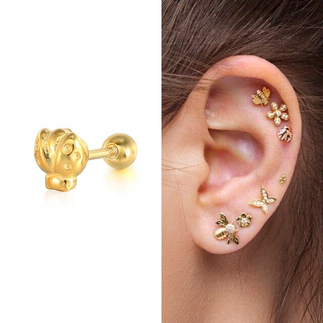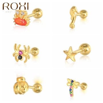 ROXI Mini Animal Earrings For Women Silver 925 Earring Screw Ear Piercing Stud Earrings Jewelry Cartilage Ear Bone Nail Earrings
