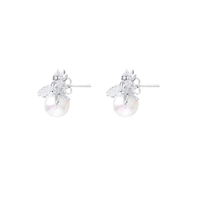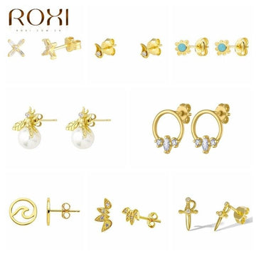 ROXI Mini Bee X Comma Dagger Beetle Wave Flower Crown Round Stud Earrings for Women Men Jewelry 925 Sterling Silver Earrings