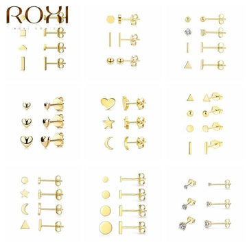 ROXI Mini Star Triangle Stud Earrings for Women Girls Piercing Earrings Minimalism Ear nail Earring 925 Silver Jewelry 2021Trend