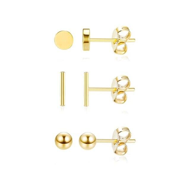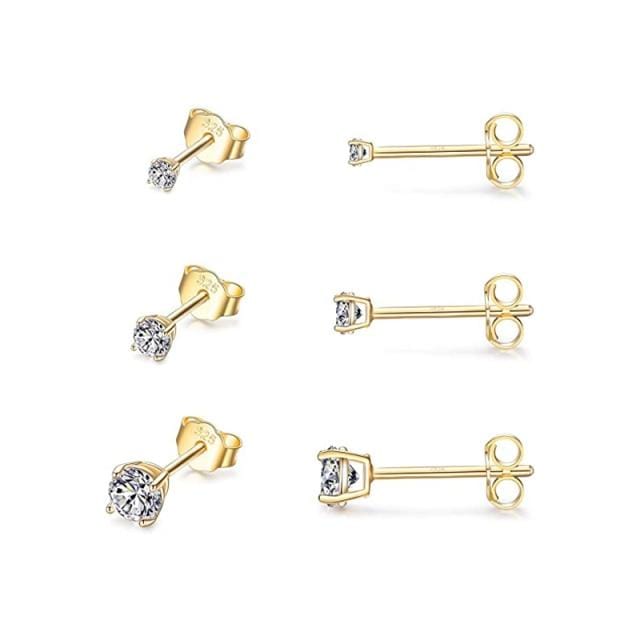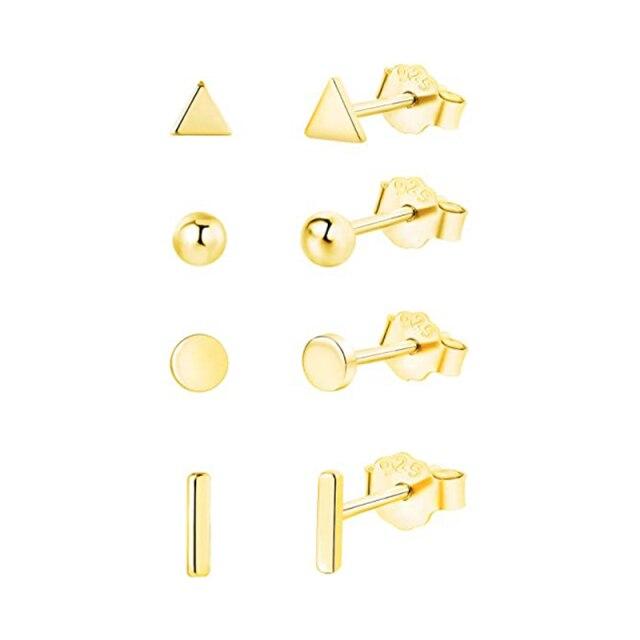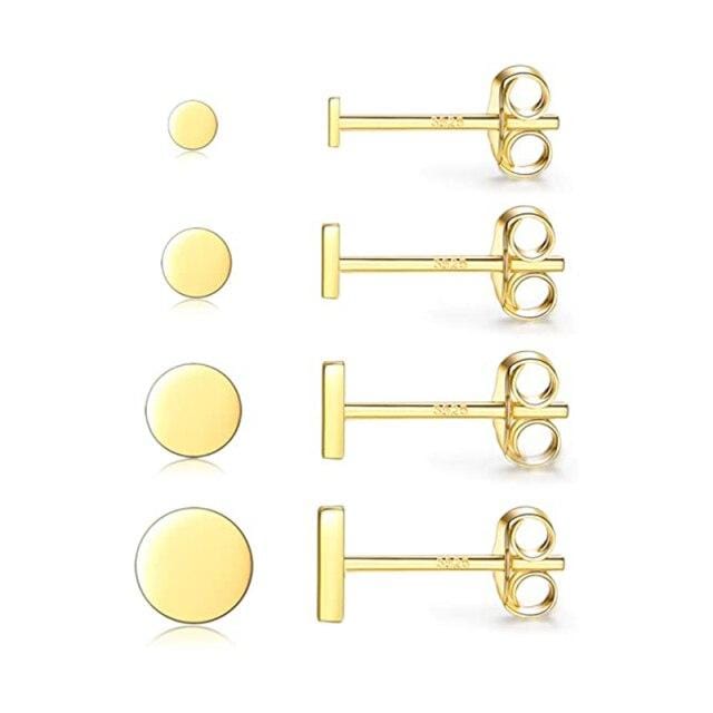 925 Sterling Silver Earrings: Gold/Silver Color Stud Earrings