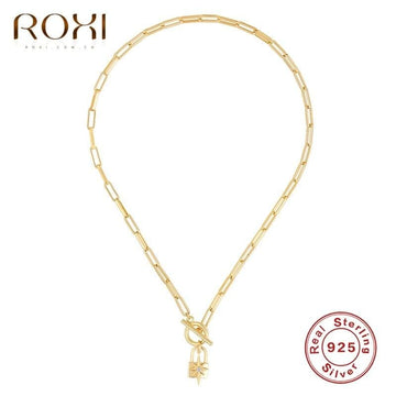 ROXI Minimalism Chains Star Lock Pendant Necklaces for Women Gold Necklace Jewelry Chain Sterling Silver 925 Choker Collares