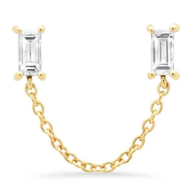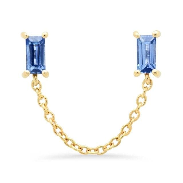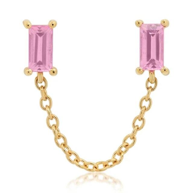 ROXI Minimalism Colorful Square Stone Stud Earrings for Women Girls Link Chain Earrings Piercing 925 Sterling Silver Pendientes