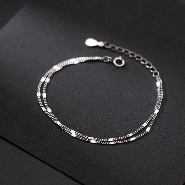 ROXI Minimalism Double Sequin Stitching Chains Bracelets for Women 2021 Fashion Jewelry Simple Bracelet Bangles Pulseras Mujer