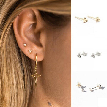 ROXI Minimalist 925 Sterling Silver Three Ball Stud Earrings Delicate Tiny Dot Small Earrings Cartilage Helix Piercing Earrings