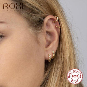 ROXI Minimalist 925 Sterling Silver Twisted Stud Earrings for Women Geometric Circle Hoops Small Earrings Helix Piercing Earings