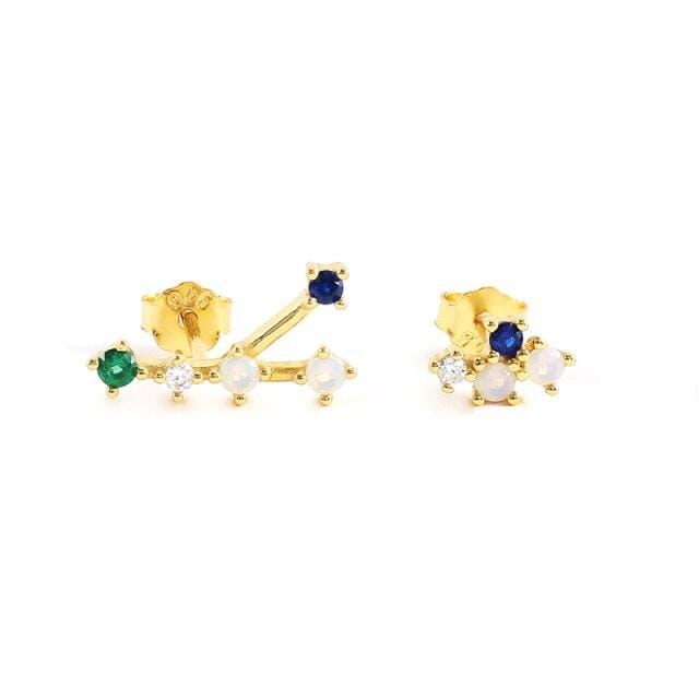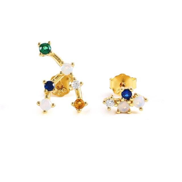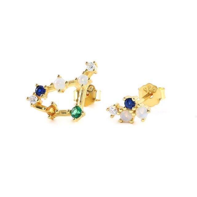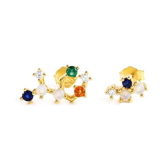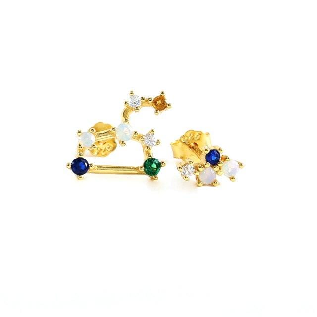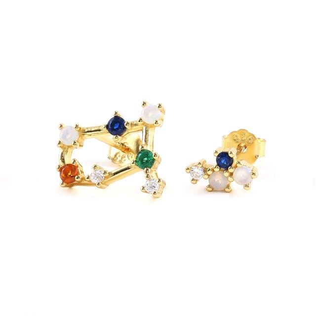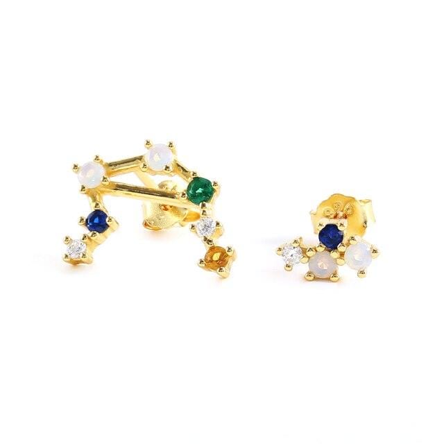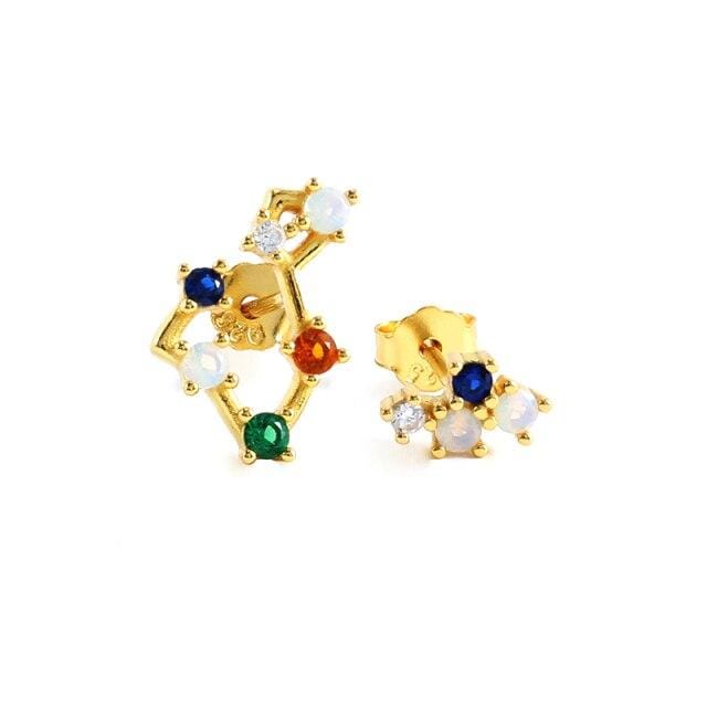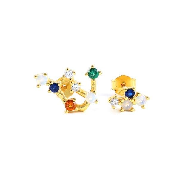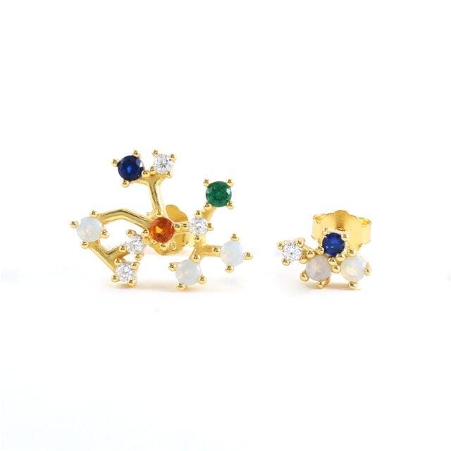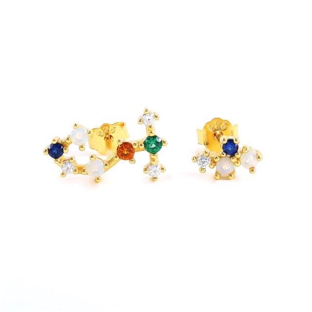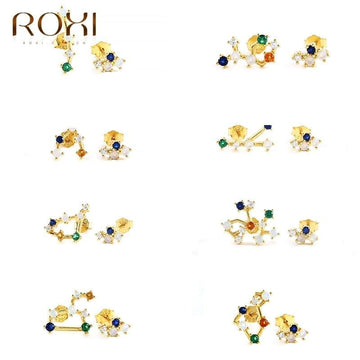 ROXI New 12 Constellation Earrings Colourful Zircon Tragus Ear Piercing Earrings Cartilage Studs Earrings Jewellery 925 Silver