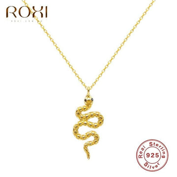 ROXI Punk Animal Snake Pendant Necklaces for Women Girls Wedding Party Jewelry Gift 925 Sterling Silver Gold Necklace Collares