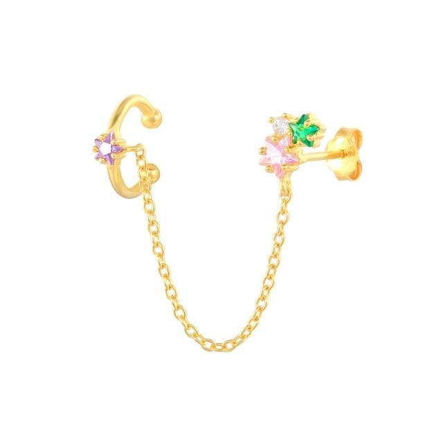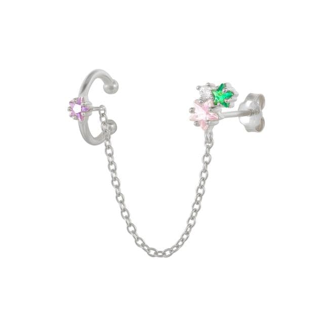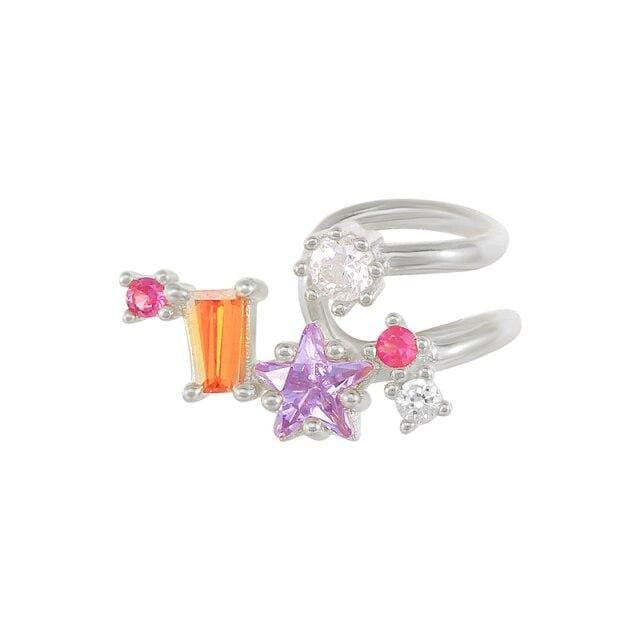 ROXI Rainbow Stone Star Geometry Clip Earrings for Women Girl No Piercing Earrings Cuffs 925 Sterling Silver Pendiente Plata 925