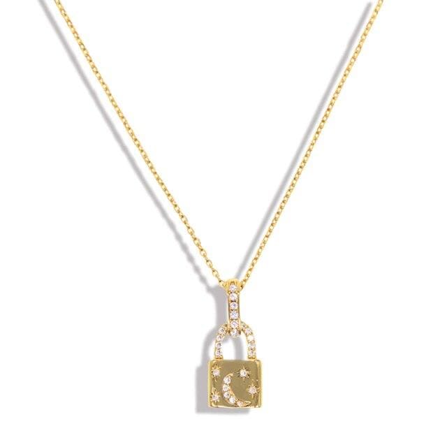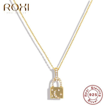 ROXI Shiny Crystals Lock Pendant Necklaces For Women Girl Moon Star Jewelry 925 Sterling Silver Necklace Collares Chains Choker