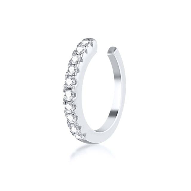 ROXI Simple C Shape Zircon Crystals Fake Piercing Clip Earrings for Women Girls Jewelry Earrings 925 Sterling Silver Ear Cuffs