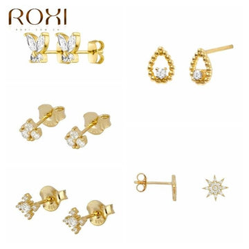 ROXI Simple Flower Sun Clover Cross Teardrop Small Earrings for Women Piercing Earrings Stud Silver 925 Jewelry Pendientes