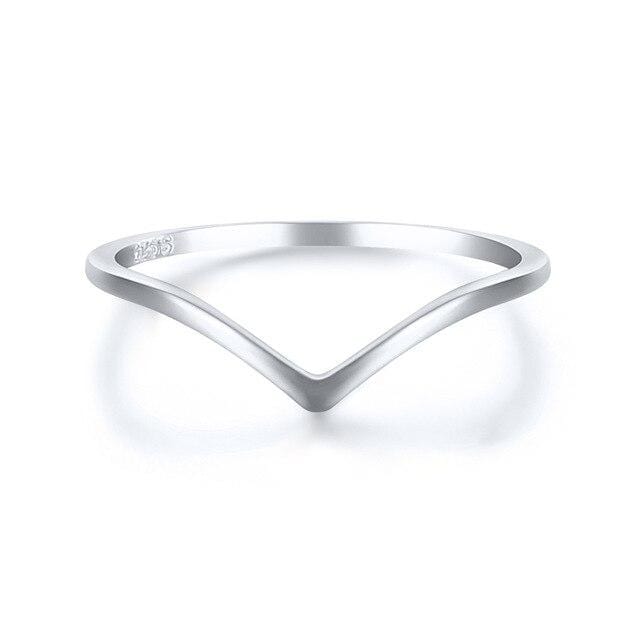 ROXI Simple Thin 925 Sterling Silver Rings for Women Anti-allergy Smooth Couple Wedding Rings V Shape Smooth Slim Knuckle Rings