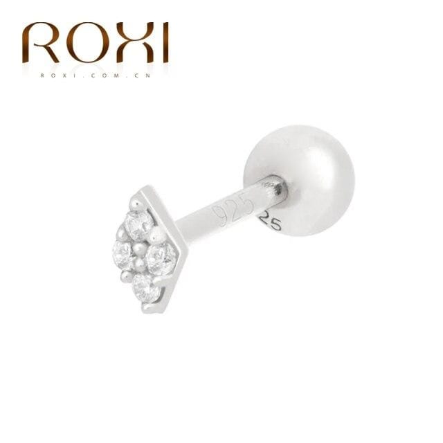 ROXI Simple Threaded Triangle Rhombus Zircon Small Stud Earrings for Women Lovely Mini Wedding Jewelry Cartilage Earring Brincos