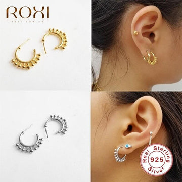 ROXI Small Beads C Shape Stud Earrings for Women Girls Piercing Earrings Unusual 925 Sterling Silver Jewelry Pendientes Earring