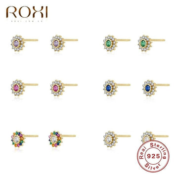 ROXI Small Rainbow Crystals Sunflowers Stud Earrings for Women Girls Wedding Earrings Piercing 925 Sterling Silver Jewelry Gift