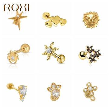 ROXI Small Stud Earrings for Women Heart Sunflowers Crown Spider Cross Lion Unusual Earring Piercing 925 Sterling Silver Jewelry