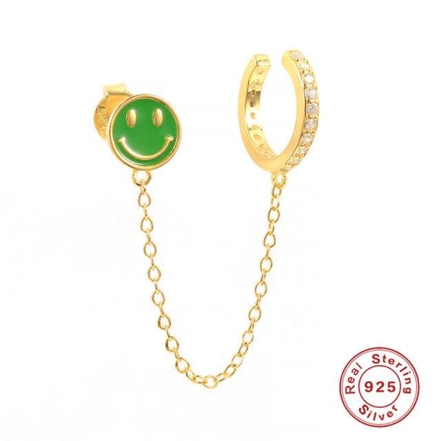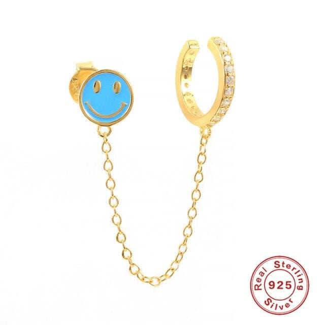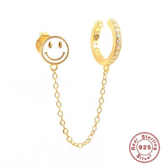 ROXI Smiley Cuffs Earrings For Women Enamel Chain Ear Clip Stud Earrings Fake Earring Jewelry Dangle Earrings Silver 925 Jewelry