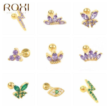 ROXI Sweet Crystal Stud Earrings For Women Girls 925 Silver Colourful Huggie Earring Wedding Jewelry Accessories Any Collocation