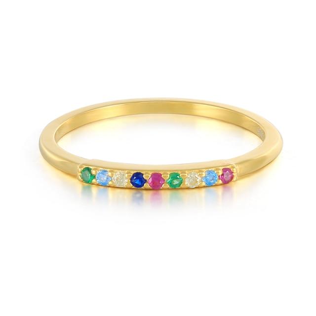Women Jewelry: Minimalist Thin Circle Gem Rings Jewelry Carving S925