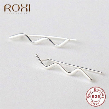 ROXI Trendy Wave Ear Climber Stud Earrings for Women Punk Ear Crawler Wrap Earrings Korean Jewelry 925 Sterling Silver Earrings