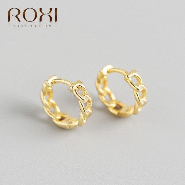 ROXI Unique Chain Stud Earrings Minimalist 925 Sterling Silver Chunky Chain Round Circle Earrings for Women Jewelry Punk Earring