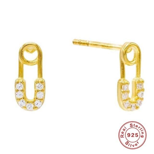 ROXI Unique Paperclip Safety Pin Micro Paved CZ Stud Earrings for Women Girls Punk Jewelry 925 Sterling Silver Piercing Earrings