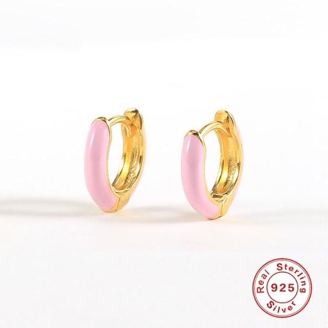 ROXI Woman's Earrings Enamel 925 Sterling Silver Huggies Earrings Dripping Oil Cartilage Hoop Earring For Wedding Birthday Gift