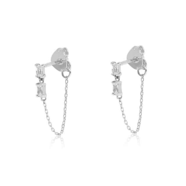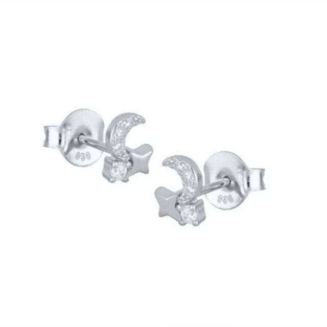 ROXI Zircon Crystals Stud Earrings for Women Moon Rectangle Earings C Shape Ear Stud 925 Sterling Silver Pendientes Plata 925