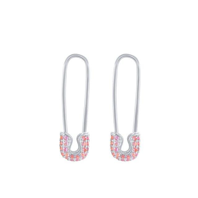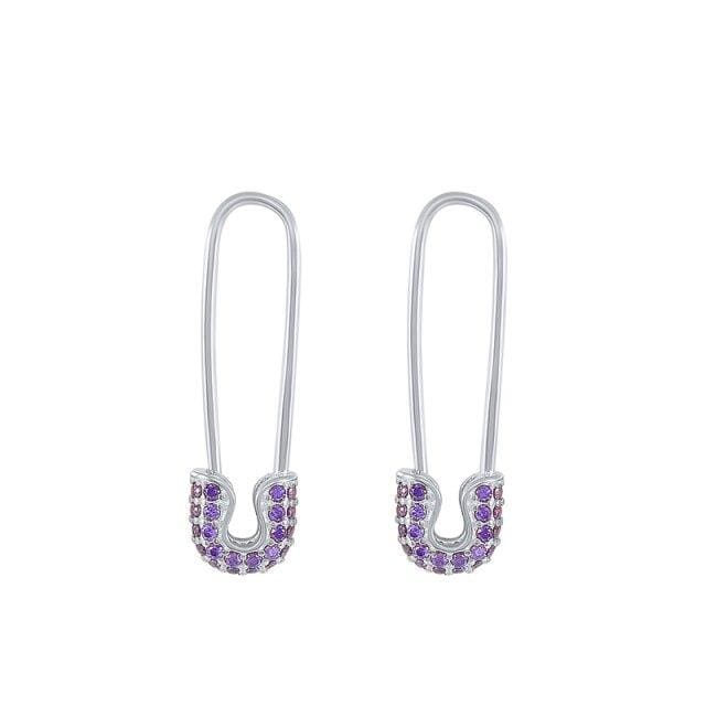 ROXI Zircon Safety Pin Stud Earrings For Women Pendientes Plata 925 Earring Personality European And American Style Fine Jewelry