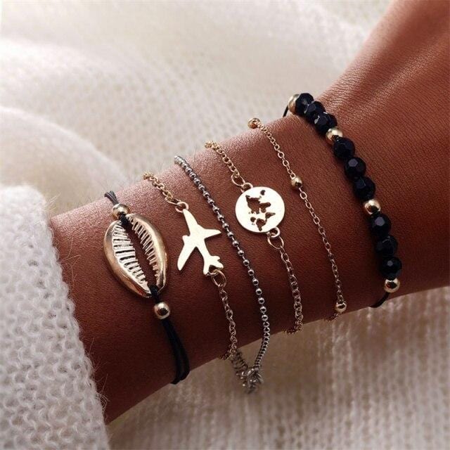 2019 4 Style Bohemian Heart Turtle Beads Charm Bracelets Set For Women Handmade Shell Bracelet Female Fashion Jewelry 5 Pcs/Set