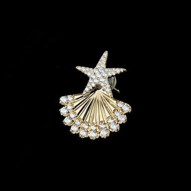 925 Sterling Silver Earring Starfish Shell Small Fish Ear Stud Fashion Zircon Monaco Jewelry Charm Luxury Lady Birthday Gifts