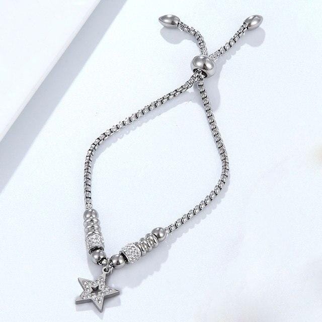 Beautiful Adjustable Size Zircon Star Bracelet for Women Stainless Steel Bead snake chain Bracelet Gold plating jewelry