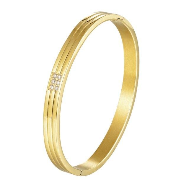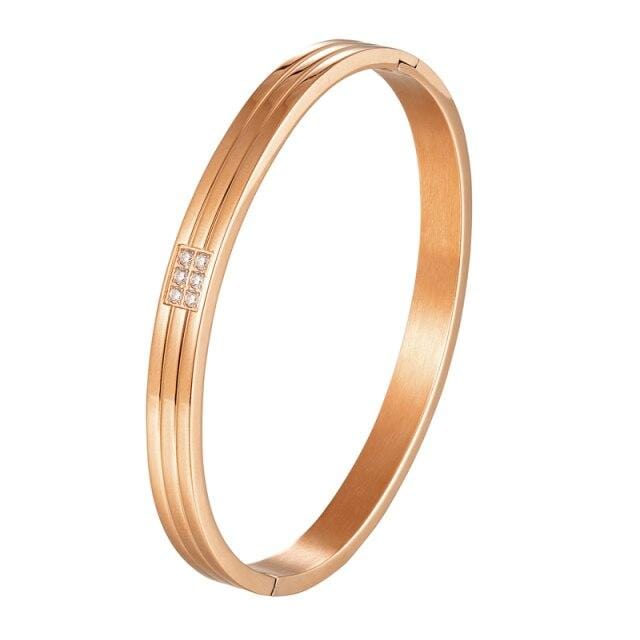 Beautiful Stripe Shape Inlaid Zircon Bracelet Bangle High Quality Stainless Steel Woman Fashion Jewelry Love Gift
