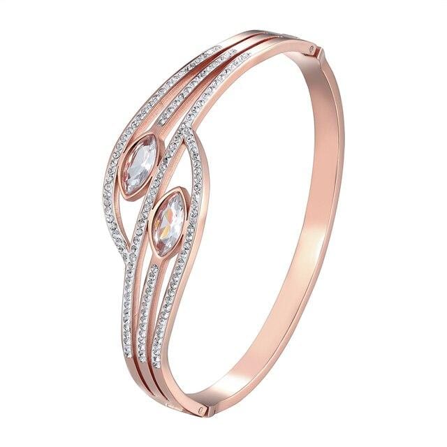 Beautiful Water Drop Shape Crystal Bracelets & Bangle Stainless Steel Gold Rose Gold Silver Color Woman Bangle Jewelry wholesale