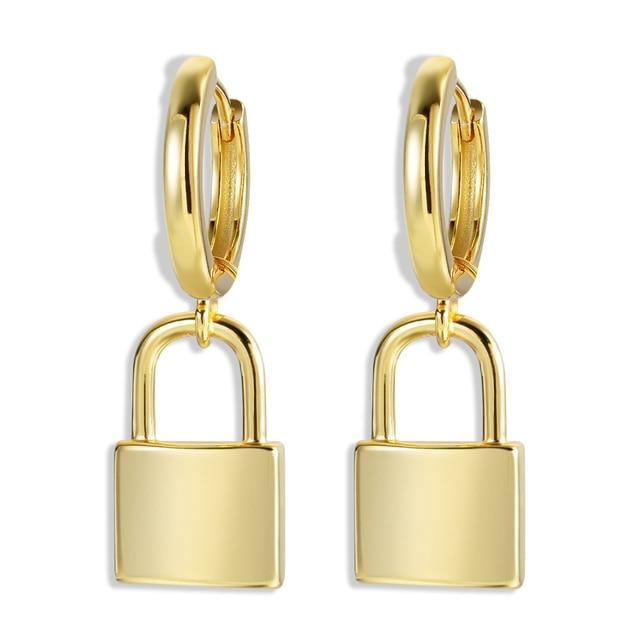 Huggie Padlock Earrings Gold Silver Color Female 925 Sterling Silver Key Lock Drop Earrings for Women Men Ear Piercing Jewelry