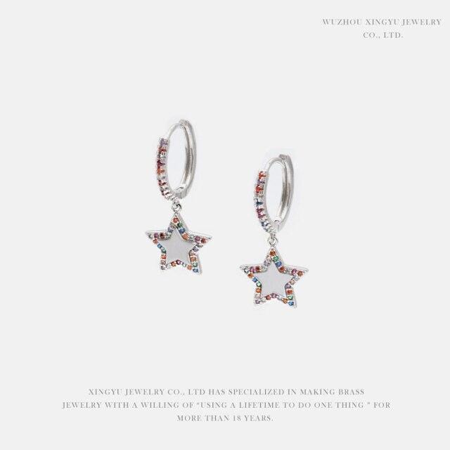 SIPENGJEL 1 Pair Fashion Rainbow Colorful Star Earrings High Quality Cz Crystal Pendant Hoop Earrings For Women Jewelry 2021