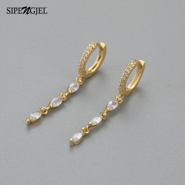 SIPENGJEL Elegant Square Shape Crystals Drop Earrings Charm Zircon Small Hoop Earrings For Women Pendants Jewelry 2021