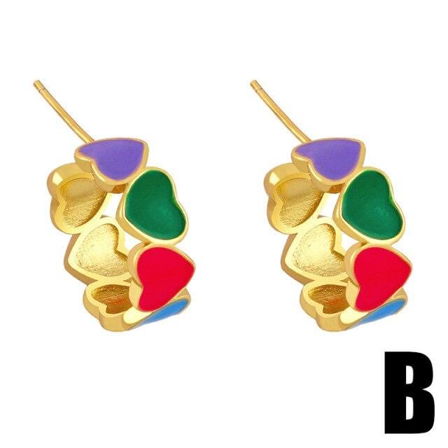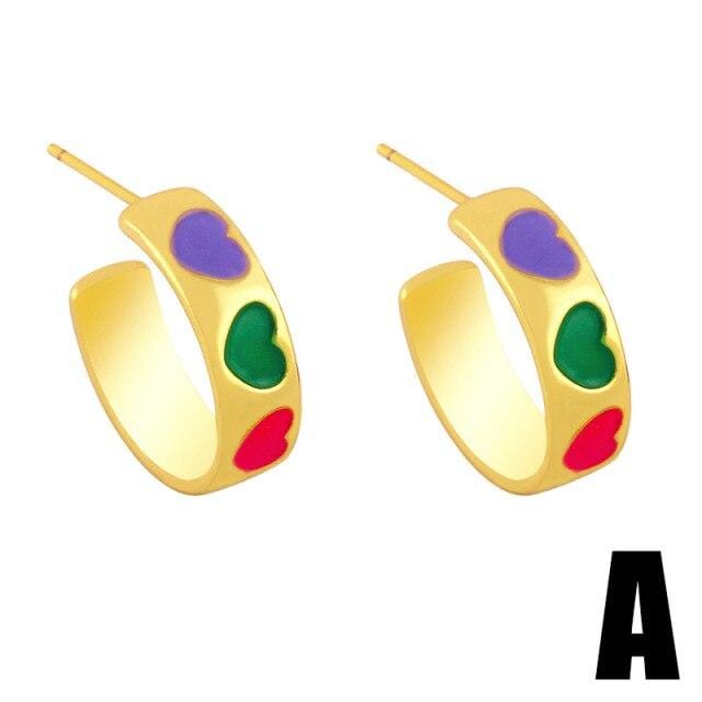 SIPENGJEL Fashion Colorful Love Heart Hoop Earrings Green Red Small Circle Earrings For Women Jewelry Gift