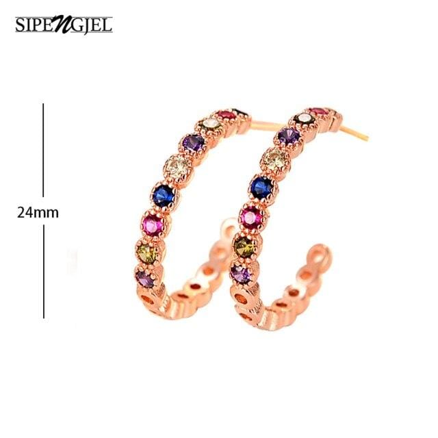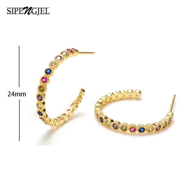 SIPENGJEL Fashion Colorful Rainbow Crystal Earrings Geometric Round Circle Big Hoop Earrings For Women Gift Party Jewelry 2021