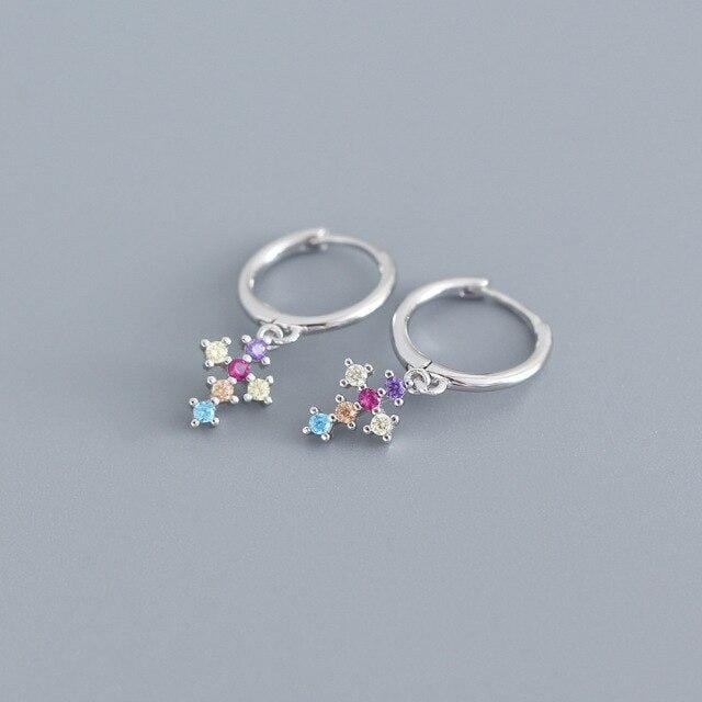 SIPENGJEL Fashion Colorful Zircon Cross Drop Huggie Earrings For Women Geometric Small Hoop Earrings Girls Jewelry Gift 2021