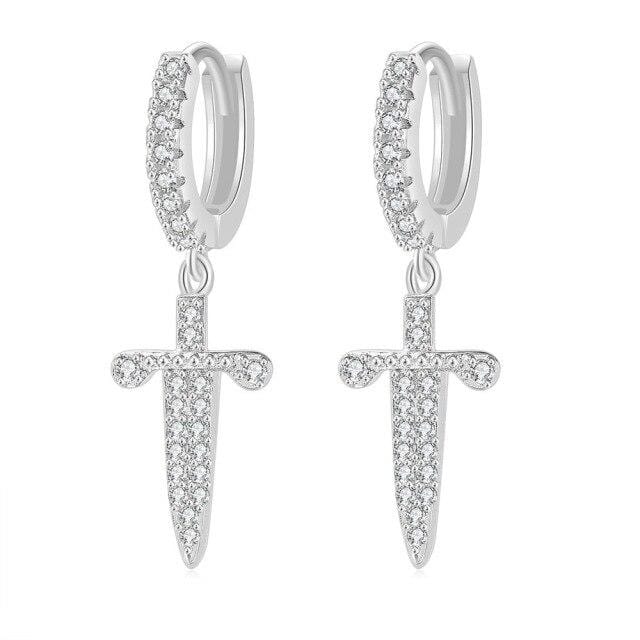 SIPENGJEL Fashion Crosses Ear Piercing Earrings For Women Personality Cross Pendant Hoop Earrings Jewelry 2021