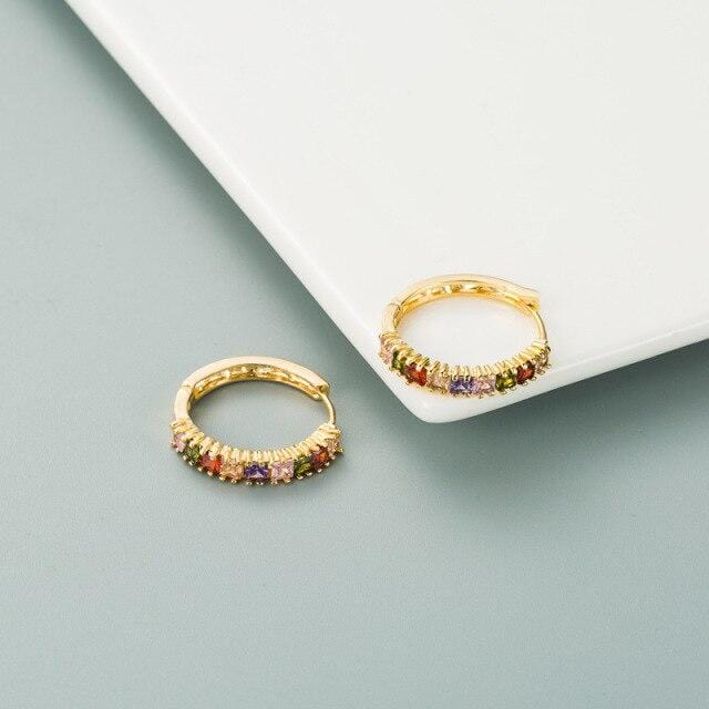 SIPENGJEL Fashion Cubic Zircon Geometric Punk Hoop Earrings Colorful Earrings For Women Jewelry 2021