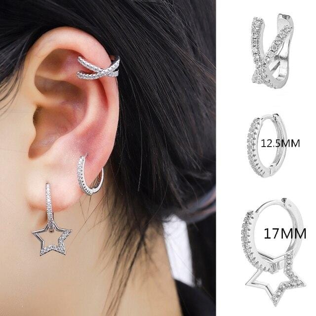 SIPENGJEL Fashion Cubic Zircon Star Ear Cuff Earrings Set Elegant Temperament Hoop Earrings For Women Girls Jewelry Gift 2021