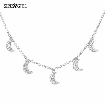 SIPENGJEL Fashion Cubic Zirconia Cute Moon Chocker Necklace Gold And Silver Color Pendant Necklace For Women Jewelry Gift 2021