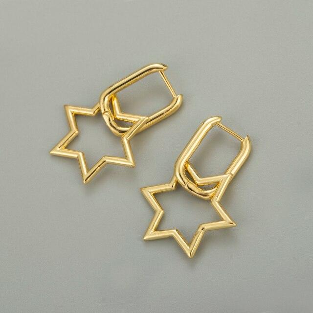SIPENGJEL Fashion Geometric O-shaped Oval Hoop Earrings Gold Color Metal Drop Earrings For Women Dectachavle Jewelry