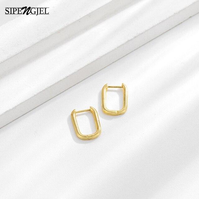 SIPENGJEL Fashion Geometric Oval Small Hoop Earrings Simple Retro Metal Drop Hoop Earrings For Women Prevent Allergy Jewelry