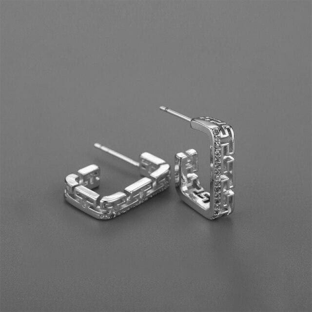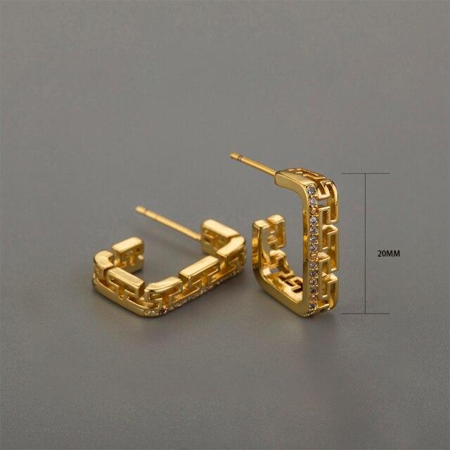 SIPENGJEL Fashion Geometric Square Stud Earrings Creative Chinese Elements Earrings For Women Jewelry Gift