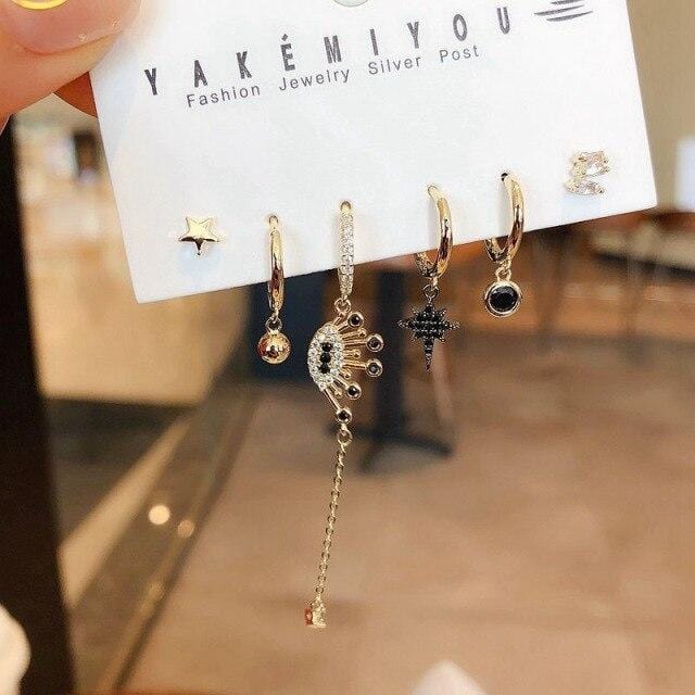 SIPENGJEL Fashion Gold And Silver Color Inlaid Zircon Earrings Set 6 Pcs Black Eye Hoop Earrings For Women Jewelry 2021