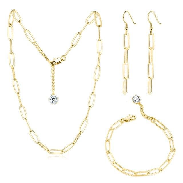 SIPENGJEL Fashion Gold Chain Shaped Earrings Necklace Bracelet Sets Link chain Bracelet Sets For Women Simple Jewelry 2021
