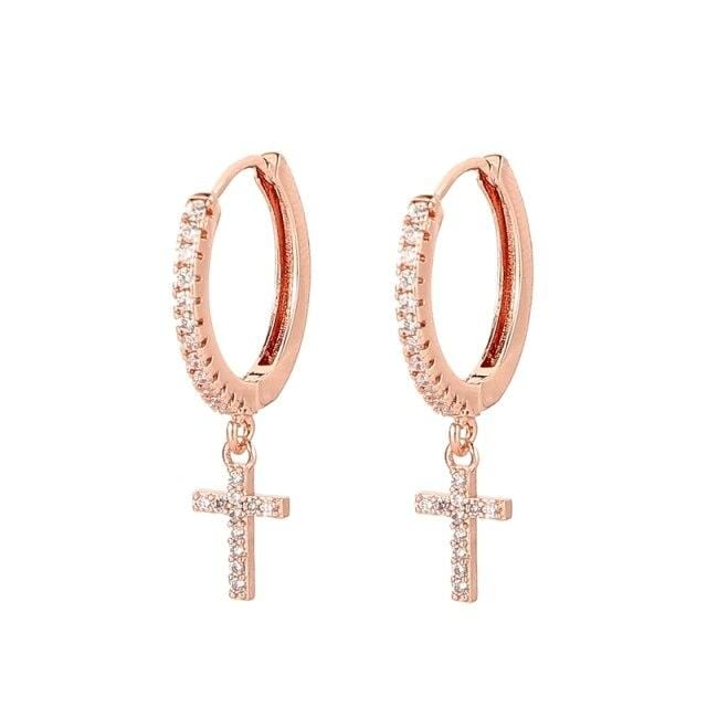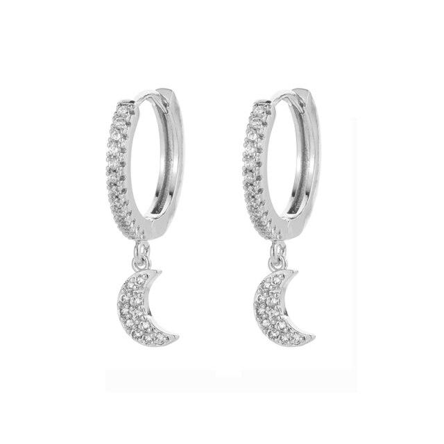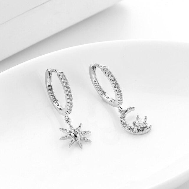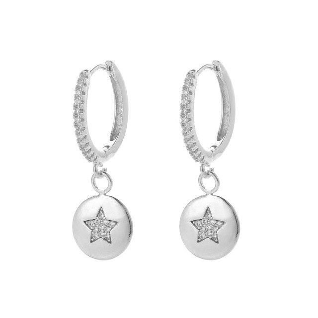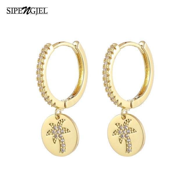 SIPENGJEL Fashion Gold Circle Hoop Earrings For Women Cross Star Moon Eye Drop Dangle Earrings Party